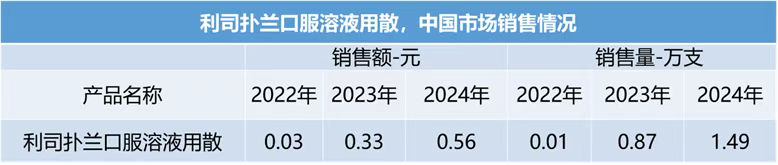 市场表现:2022-2024年院内销售额分别为0.37、0.53、0.51亿元,销售量分别是0.78、1.42和1.35万支。