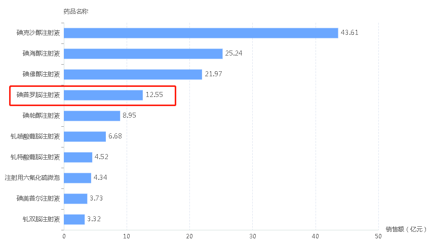 2021年造影剂院内销售市场TOP10药品