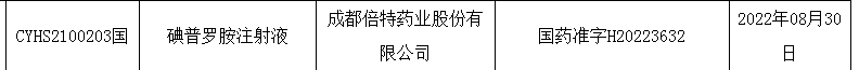 除了此次获批的受理号(CYHS2100203)外,成都倍特药业今年还递交了碘普罗胺注射液的另一个上市申请(受理号:CYHS2200557),尚在审评审批中。正大天晴药业今年4月,递交了2个碘普罗胺注射液的上市申请,有望成为国产第2家获批生产该品种的企业。