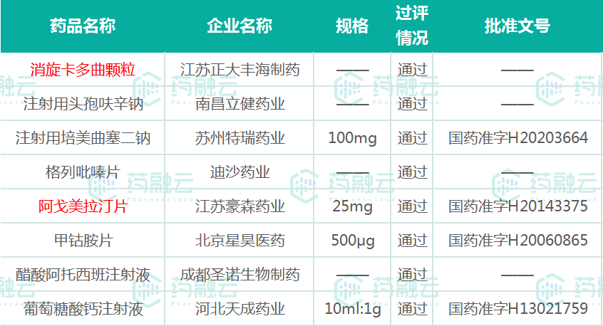 09.06过评药品名单(标红为仿制药首家过评)