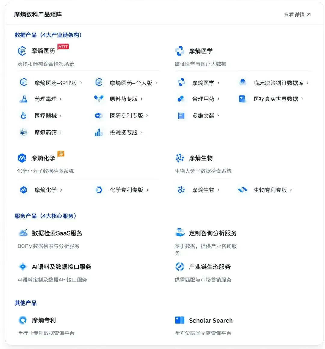 场景化产品矩阵赋能:依托数据与技术积淀,摩熵数科打造了包含15大数据库集群、200余个专业子库的产品体系,通过SaaS平台、API接口及AI模型等模式,为政产学研医投六大客户群体提供精准服务。课程聚焦的靶点发现、临床优化、市场准入等关键决策环节,恰是其旗下摩熵医药、摩熵化学、摩熵生物等核心产品的赋能领域;而课程实训环节直接对接摩熵BCPM数据智能平台,更成为学生接触真实产业级数据环境的重要窗口。