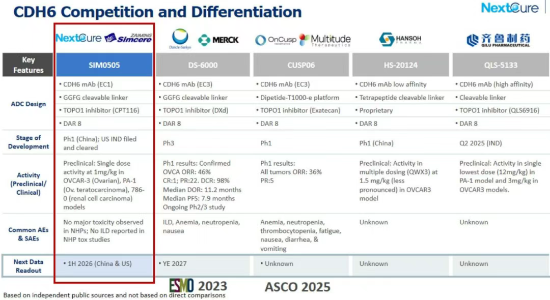 CDH6 ADC当前竞争格局:第一三共/默沙东的DS-6000是当前研发进度最为领先的CDH6 ADC,但致命性弱点在于安全性风险,这为后来者提供巨大机会。先声再明的SIM0505有望成为一款差异化的CDH6 ADC资产,为NextCure带来新的希望。