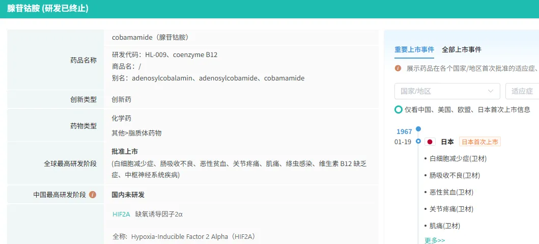 目前,国内已批准上市销售腺苷钴胺的剂型有片剂、注射剂和胶囊剂,共计41家企业的54个批文在使用中。腺苷钴胺胶囊原研在国内尚未上市。