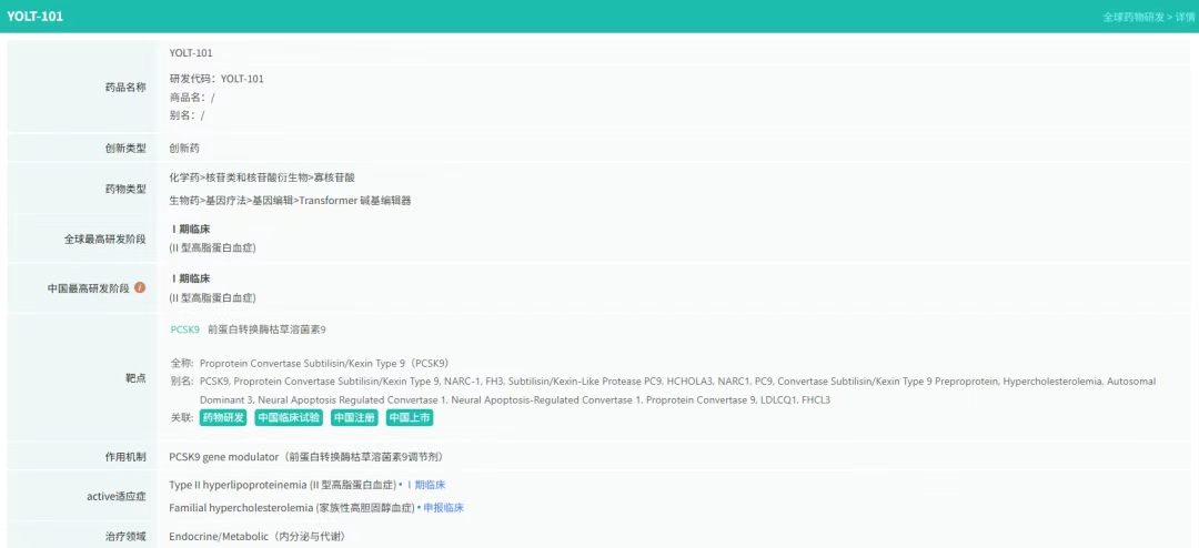 YOLT-101的临床优势包括其长效性,单次给药即可实现LDL-C持续降低,避免每日服药负担;其次是安全性,碱基编辑技术减少脱靶风险,IIT研究未报告严重不良事件;最后是拓展性,基于相同机制,药物未来可延伸至普通高脂血症治疗,惠及更广泛人群。