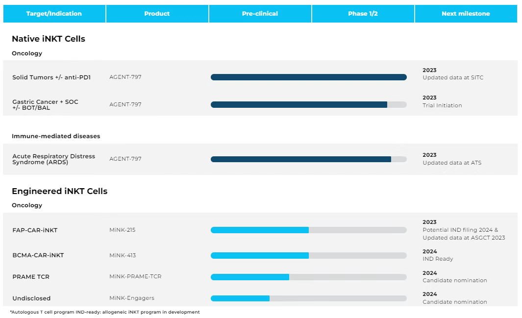 AgenT-797是一款同种异体 iNKT 细胞疗法,在临床前研究中,agenT-797 展现出了良好的抗肿瘤活性。它能精准识别并靶向杀伤肿瘤细胞,同时对正常组织的损伤较小,具有较高的安全性和特异性。研究数据显示,其在多种肿瘤模型中都能有效抑制肿瘤生长,甚至使部分肿瘤出现缩小或消退的情况,为后续进入临床试验奠定了坚实基础。