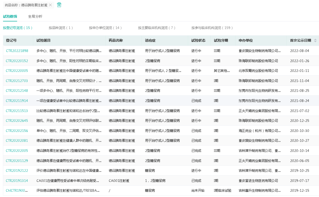 德谷胰岛素注射液国内临床试验情况(搜索"药融云小程序"进行相关更多数据查询)