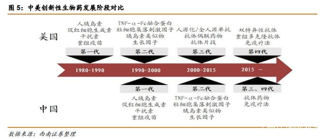 中国生物制造起步较国外晚,但是进展速度很快,2015年后随着一系列新药政策的推出、海外资本的涌入以及医疗人才的回归,国内生物药研发直接跳过了三期阶段的发展,以三、四期同步发展进行,在CAR-T,PD-1抑制剂和双特异性抗体等研究热点领域逐渐缩小了与欧美的差距。