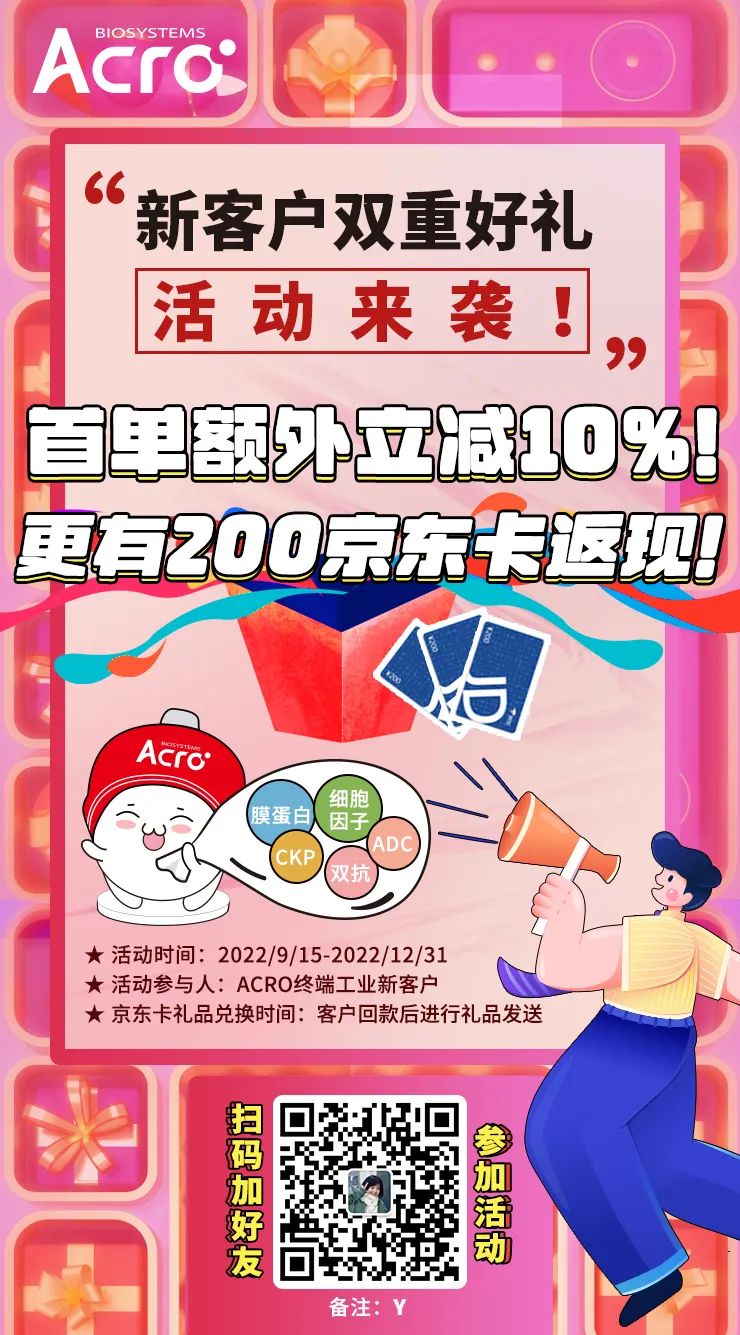 活动期间新客户来ACRO下首单(任何产品),额外立减10%,更有200元京东卡!