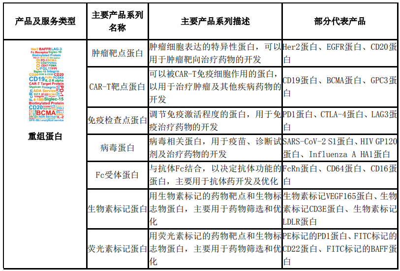百普赛斯处于生物药产业链的上游,主要为全球制药企业、生物科技公司、科研机构提供重组蛋白、抗体等生物试剂。产品及服务包括蛋白、抗体、试剂盒及分析检测服务,应用于肿瘤、自身免疫疾病、心血管病、传染病、脑神经等疾病的药物筛选及优化、临床前实验及临床试验、药物生产过程及工艺控制(CMC)、诊断试剂开发及优化等研发及生产环节。