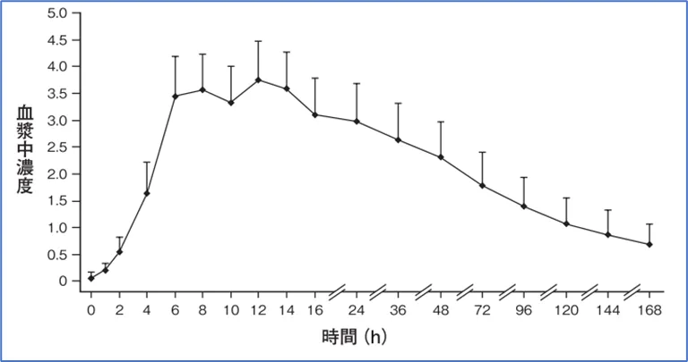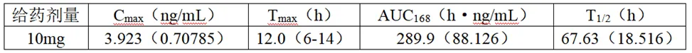 IF文件披露日本健康受试者空腹单剂量口服10mg规格(半片)后,体内伏硫西汀药代动力学结果如下:
