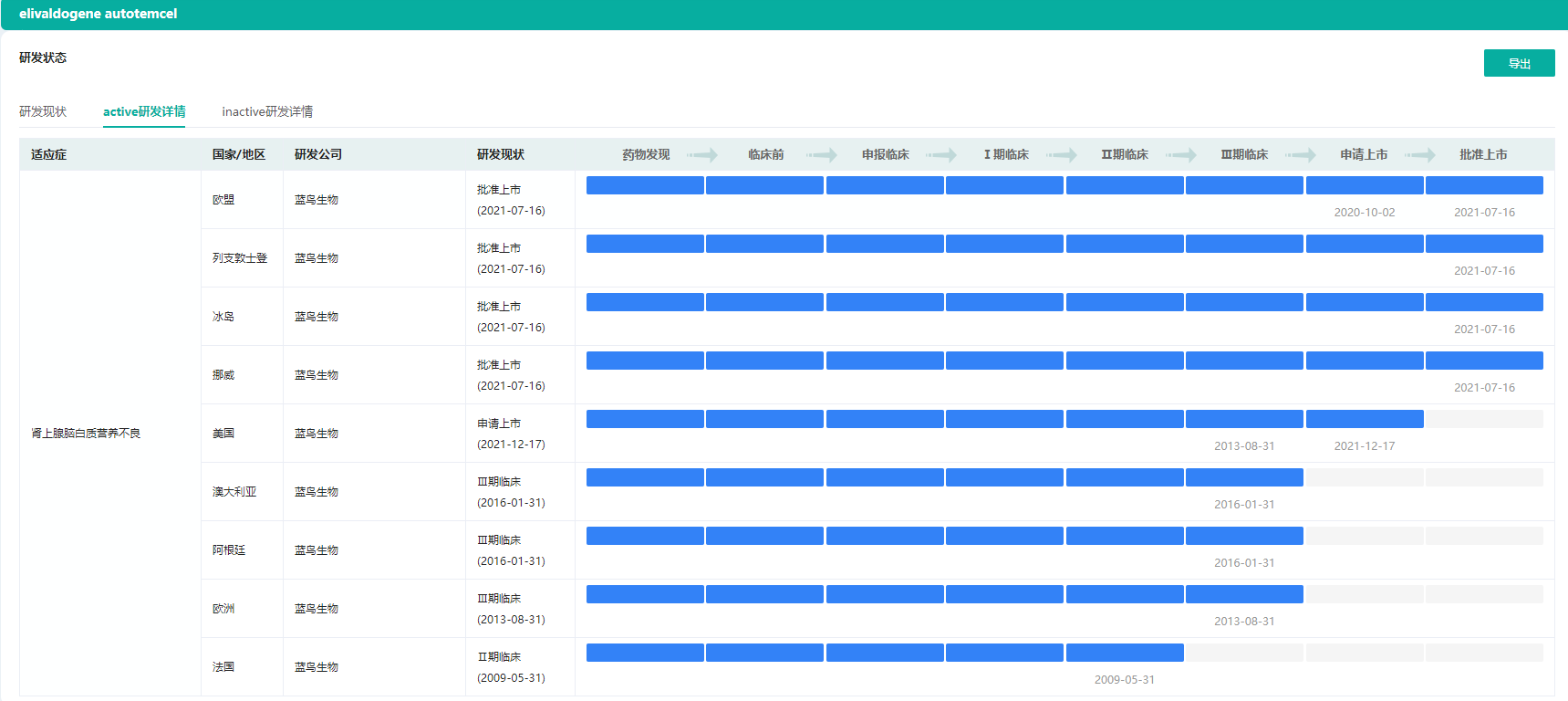 SKYSONA®主要用于减缓4-17岁早期活动性脑肾上腺脑白质营养不良(CALD)男孩神经功能障碍的进展,蓝鸟生物还证实,此前对eli-cel临床开发项目的限制已被解除。该疗法由患者自身的干细胞制成,是美国第一种可用于CALD的药物。据药融云数据显示,蓝鸟生物该基因疗法最早于2021年7月16日首次全球面世,上市国家包括欧盟、挪威、冰岛等国家,获批适应症为肾上腺脑白质营养不良。
