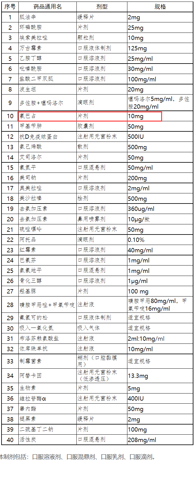 2017年发布的《第二批鼓励研发申报儿童药品建议清单》纳入了氯巴占,旨在鼓励研发,满足中国大陆境内尚未注册上市且临床急需的儿童药品。