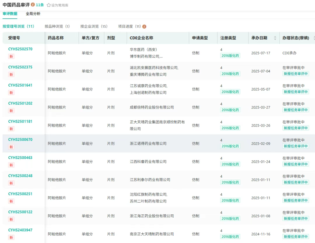 7月17日,CDE官网显示,华东医药旗下博华制药和中美华东联合提交了4类化学仿制药阿帕他胺片的上市申请,并获受理。华东医药将参与该产品国产第四家争夺。