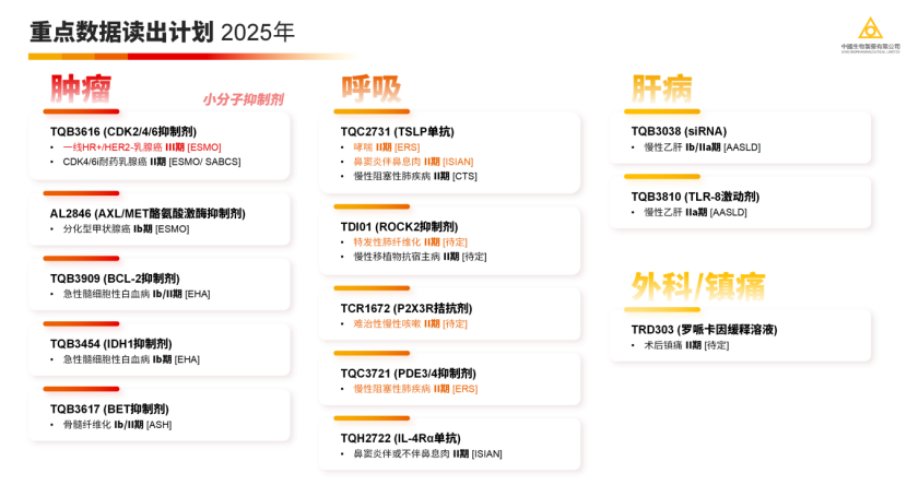 中生的管线延续了“聚焦优势领域+适度扩展”的策略,核心围绕肿瘤、肝病、呼吸、外科/镇痛四大板块。肝病线是其“基本盘”:除了已上市的润众(恩替卡韦)、天晴甘美(异甘草酸镁),其长效干扰素派罗欣(聚乙二醇干扰素α-2a)在乙肝功能性治愈领域持续探索,联合疗法III期数据值得关注;在肿瘤线中,安罗替尼(多靶点TKI)已扩展至甲状腺癌、软组织肉瘤等8个适应症,2024年销售额超50亿,成为“单品王”;呼吸线则依托布地奈德吸入剂(天晴速乐)等成熟产品,向生物类似药(如抗IL-5单抗)延伸。