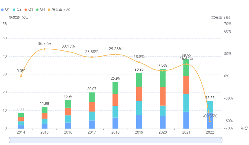 盐酸右美托咪定注射剂医院端历年销售趋势(微信搜索"药融云小程序"查看更多维度数据分析)