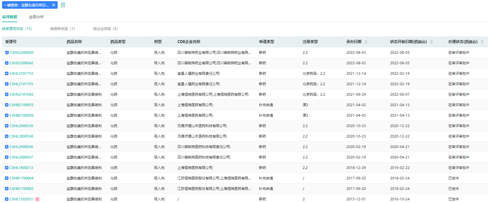 此外,盐酸右美托咪定鼻喷雾剂、酒石酸阿福特罗雾化吸入用溶液、马来酸茚达特罗粉吸入剂、色甘酸钠吸入溶液等超过20个吸入剂国内暂无企业获批,涉及四川普锐特药业、正大天晴药业集团、江苏恒瑞医药、江苏康缘药业等企业,谁将先拔头筹呢?药融云数据库将持续关注。