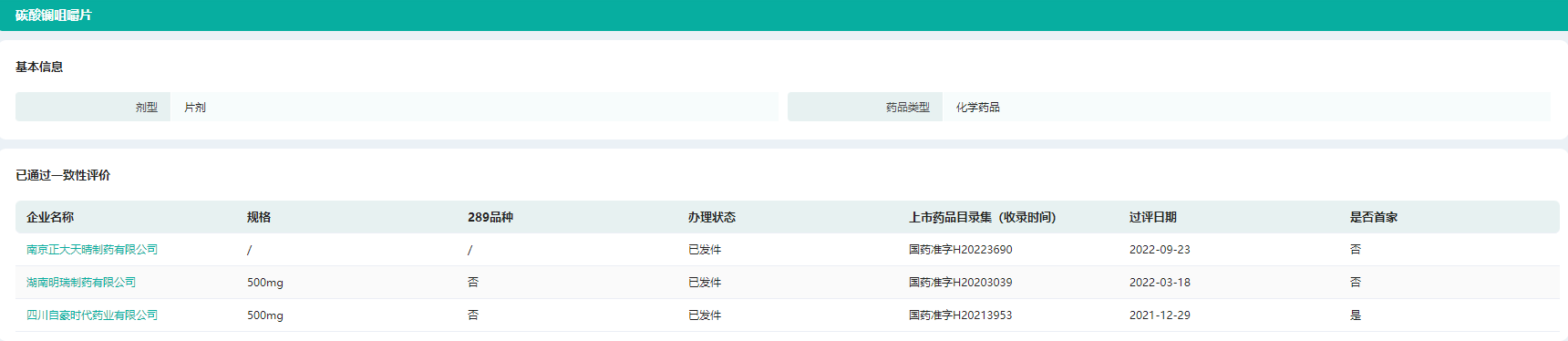 截图来源:药融云一致性评价数据库