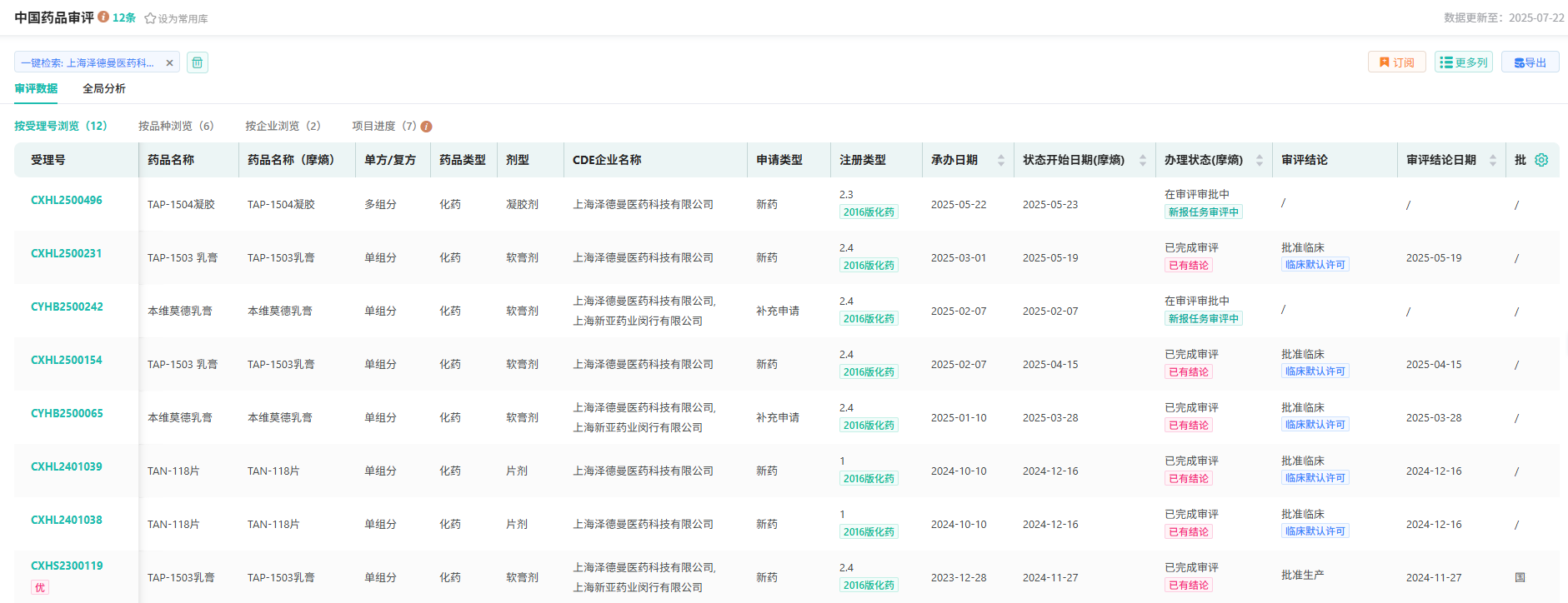 截图来源:摩熵医药-中国药品审评数据库