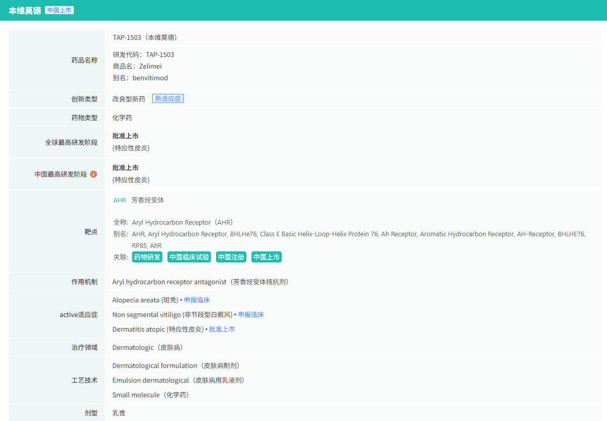 泽德曼医药是一家专注于免疫介导疾病治疗领域新药研发的创新型医药企业,致力于患者数量庞大、治疗困难、需求迫切相关疾病领域的新药研发。据摩熵医药数据库显示,除已获批上市的本维莫德乳膏外,还有TAP-1503乳膏、TAN-118片、TAP-1502喷雾剂等5款药品在研中,值得期待。