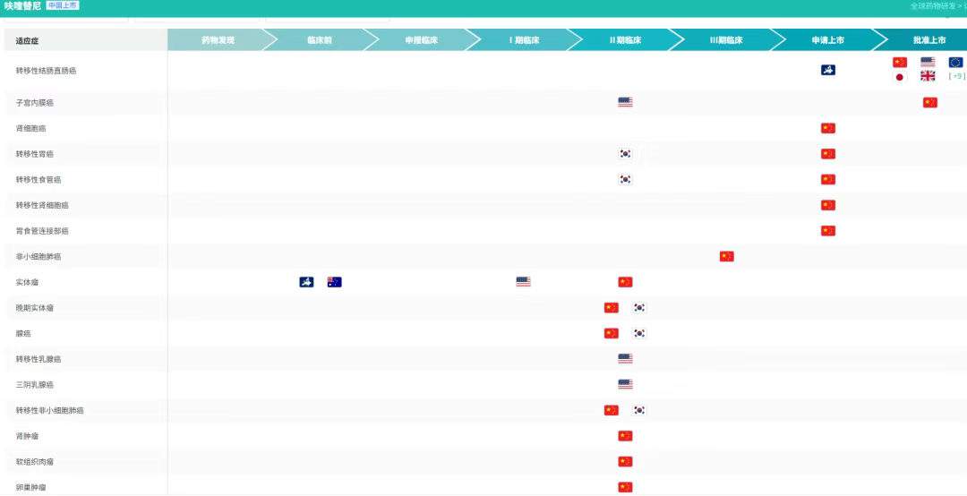 呋喹替尼不同适应症全球研发现状查询(部分)