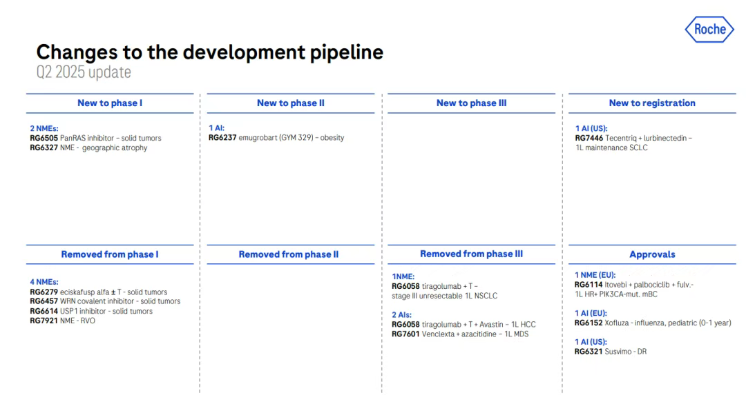 7月24日,罗氏发布2025H1业绩,同时也更新了研发管线进展。2025 H1,罗氏共削减了七个临床项目,其中包括四项I期临床研究和三项III期临床研究。