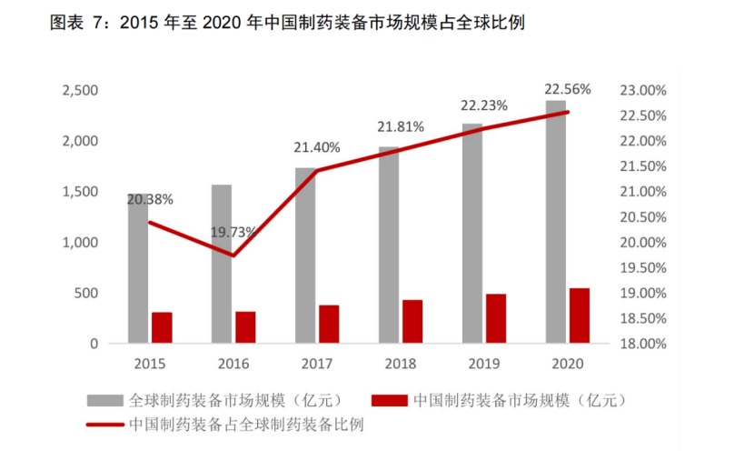 2015-2020年中国制药装备市场规模占全球比例 来源:华通证券研报