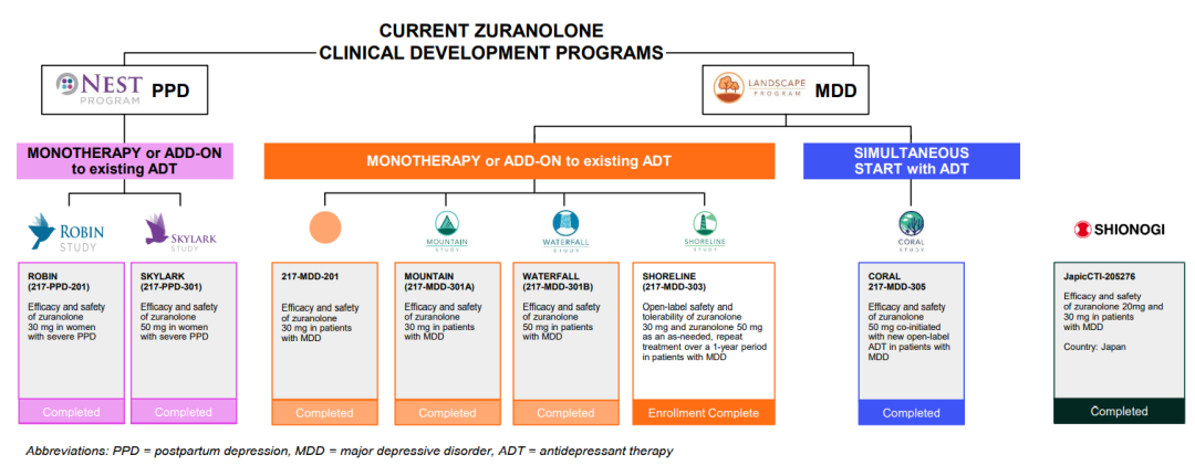 ▲ZURANOLONE的临床开发计划