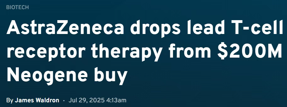 其中,2022年公司以2亿美元收购Neogene Therapeutics所获得的TCR细胞治疗药物NT-125已停止开发,据悉,该药物当时正在开展一项纳入42名患者的Ⅰ期临床试验,涉及非小细胞肺癌、结直肠腺癌和头颈部鳞状细胞癌等多种癌症。终止该项目的原因是战略投资组合优先排序。
