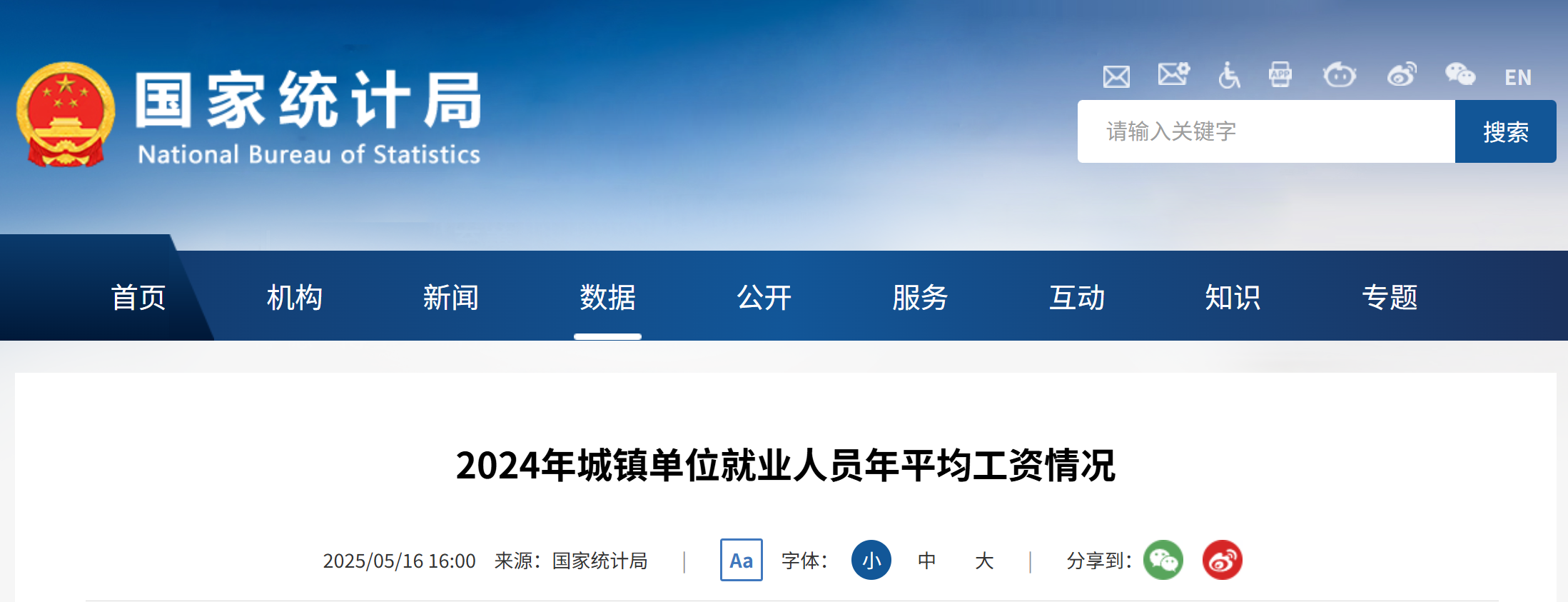 1. 国家统计局《2024年城镇单位就业人员平均工资》