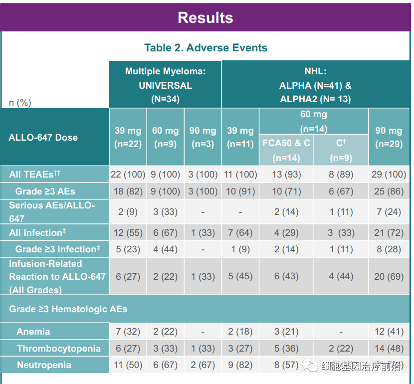 2期试验的参与者将接受90mg的ALLO-647。在该剂量下,86%的参与者在早期的非霍奇金淋巴瘤(NHL)试验中具有3级或更严重的治疗突发不良事件,60mg剂量的受试者发生率为71%。可见,较高的剂量与病毒感染细菌的高发生率有关。