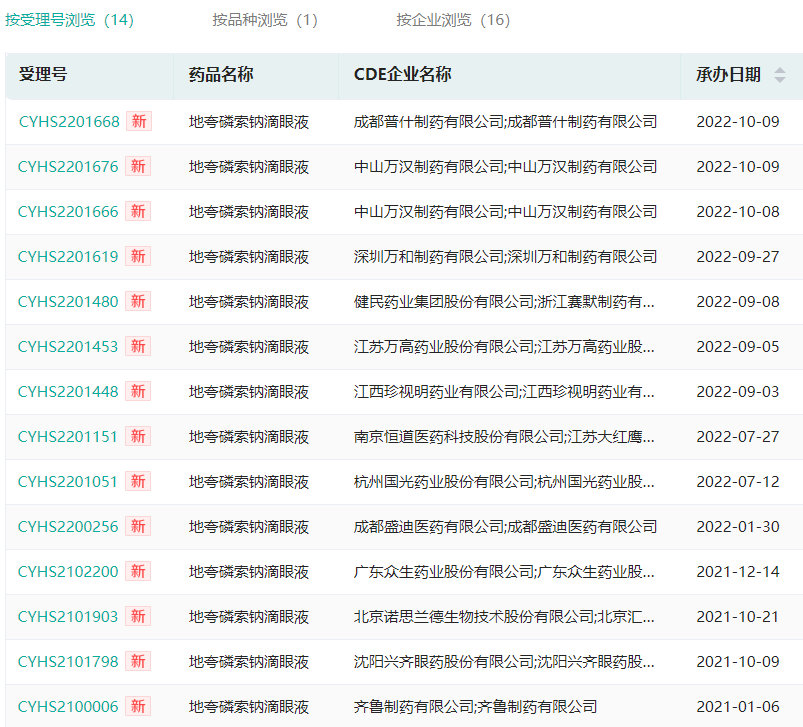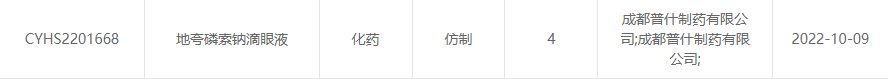 据CDE官网,成都普什制药递交的4类仿制化药地夸磷索钠滴眼液上市申请获CDE受理。该干眼症眼药水2022年的院内销售额大涨171%,是今年热门报产品种,已有9家药企陆续报产。