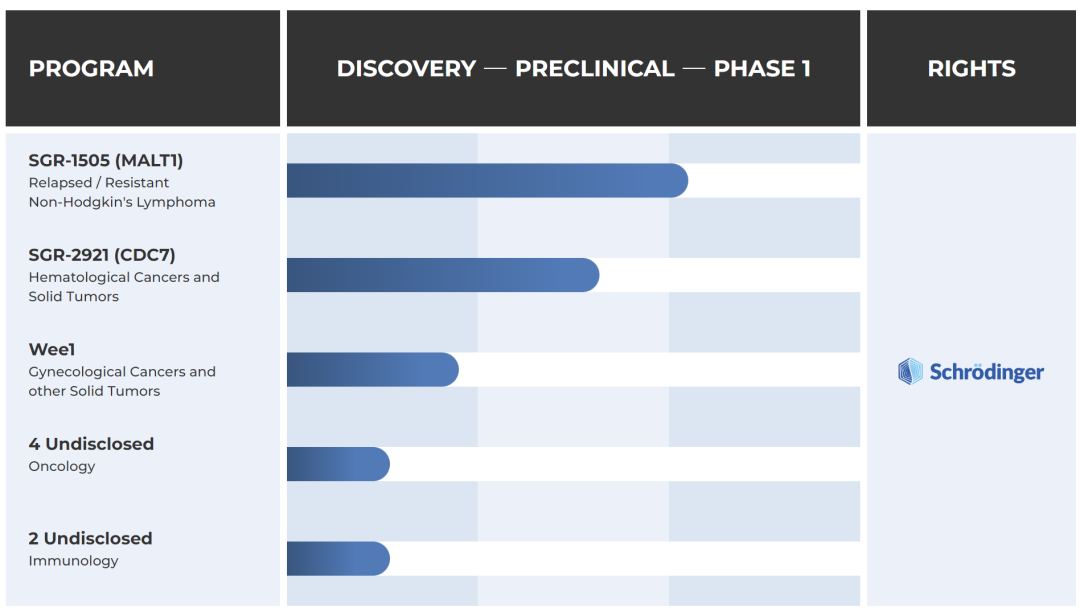今年早些时候,Schrödinger宣布FDA批准了其MALT1抑制剂SGR-1505的研究新药申请。该公司计划在今年年底前启动复发或难治性b细胞淋巴瘤患者的I期研究。