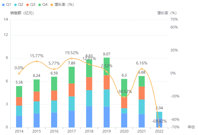 吸入用异丙托溴铵溶液是一种高选择性的M受体阻断剂,具有较强的支气管平滑肌松弛作用,是一种支气管扩张剂,可与吸入性β-受体激动剂合用于治疗急性或慢性哮喘引起的可逆性气道阻塞。据药融云数据库显示,该品种院内销售峰值超9亿元,近年来有所下滑,2021年为6.68亿元。