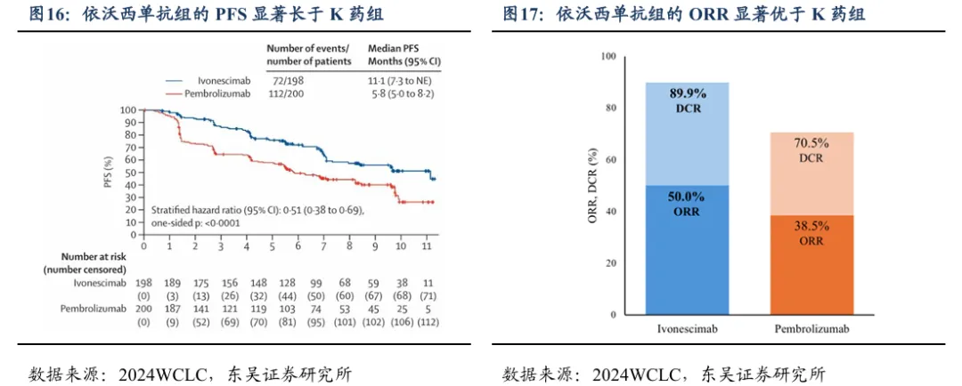 依沃西在全球范围内已经开展了超过12项注册性/III期临床研究(其中6项与PD-1/L1疗法头对头研究),包括默沙东的K药、百济神州的替雷利珠单抗、阿斯利康的度伐利尤单抗,PD-1领域的知名大药都在康方生物的挑战名单之中。
