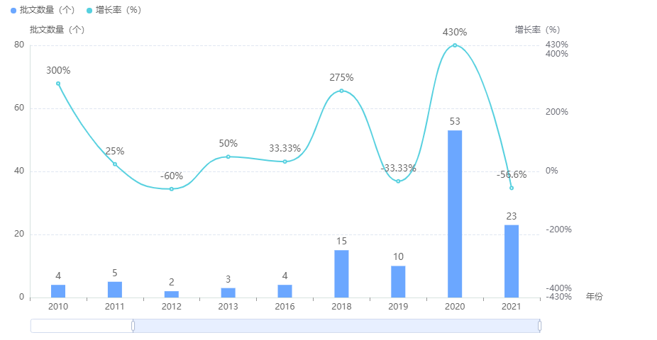 据药融云统计,2005年是注射用头孢西丁钠药品申报的井喷时期,共有94条受理号获承办,近年来除2021年外均只有个位数,但药品批文获批的趋势却蒸蒸日上,2020年共有53条之多。