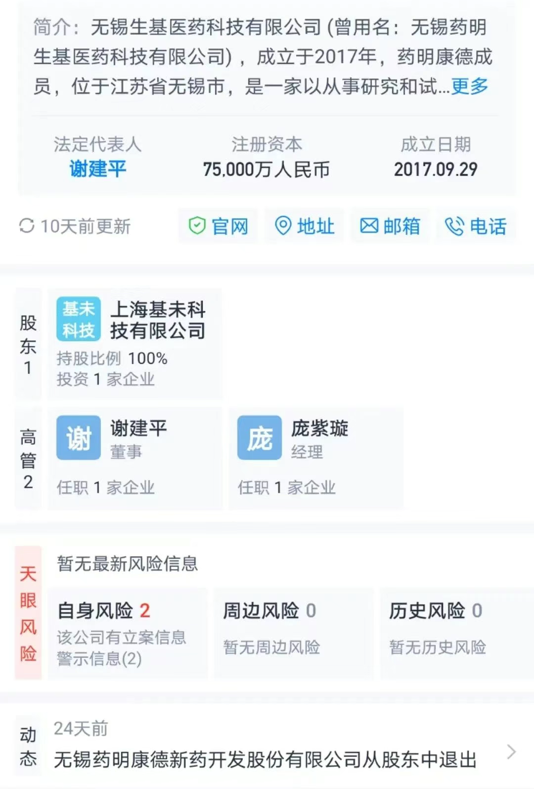 在2025年7月20日,无锡生基变更股东为上海基未100%,背后投资人为IDG资本(上海和谐汇资)、四川双马。