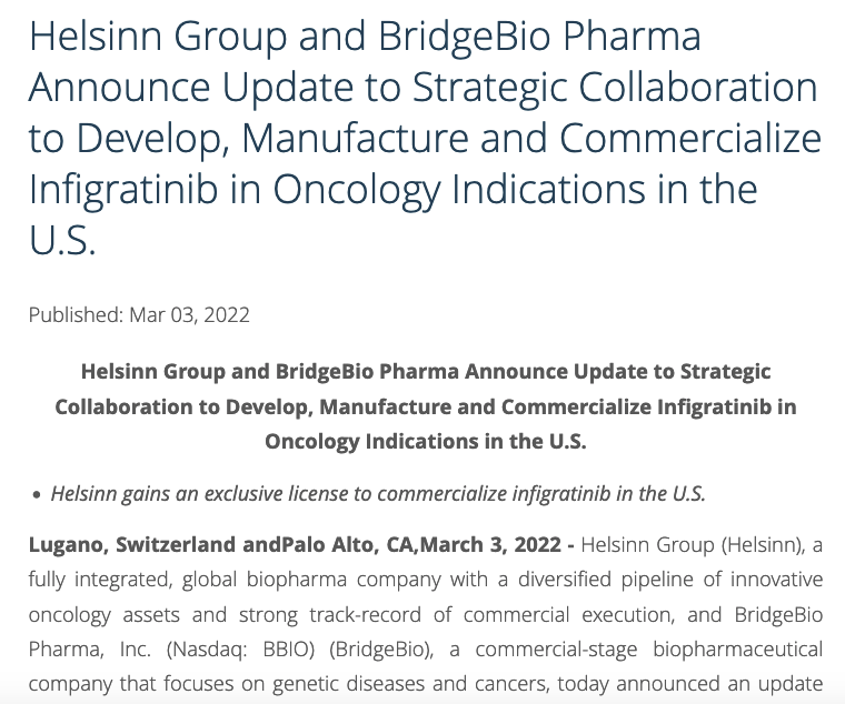 https://www.biospace.com/article/releases/helsinn-group-and-bridgebio-pharma-announce-update-to-strategic-collaboration-to-develop-manufacture-and-commercialize-infigratinib-in-oncology-indications-in-the-u-s-/?s=61;