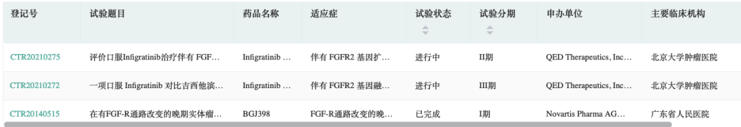 联拓生物目前正在中国进行临床试验,以评估英菲格拉替尼在伴有FGFR2基因扩增的局部晚期或转移性胃癌或胃食管结合部腺癌患者,以及因FGFR基因变异导致的其他晚期实体瘤患者中的安全性和有效性。