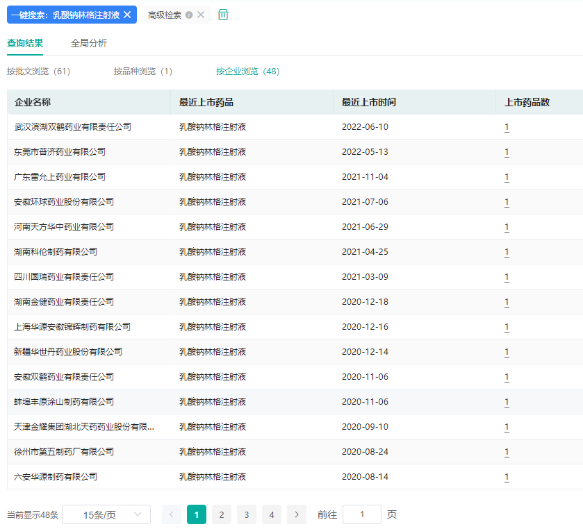 乳酸钠林格注射液获批批文的企业情况(部分,微信搜索"药融云小程序"查询更多相关数据)