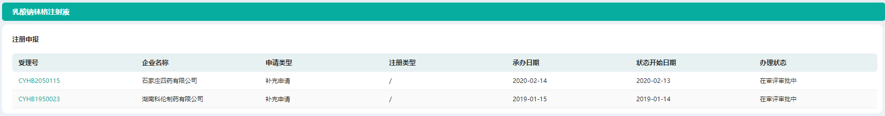 经药融云数据库查询,此前已有湖南科伦制药与石家庄四药该药的一致性评价获受理,CDE分别于2019年1月、2020年2月承办其递交的乳酸钠林格注射液补充申请,山东齐都药业则是第3家一致性评价获受理的企业。目前此三家均处于审评审批状态,国内首家有待决出,敬请期待。
