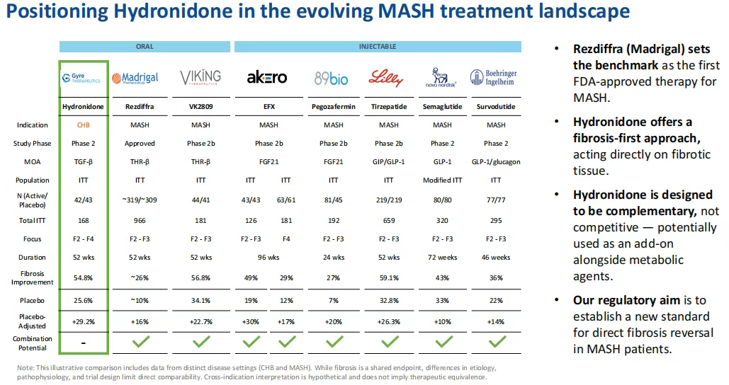 (2)从监管路径上来看,羟尼酮在CHB肝纤维化中的临床数据有助于降低其在MASH相关肝纤维化开发中的风险,并可能支持监管审评的加速通道和快速审批。