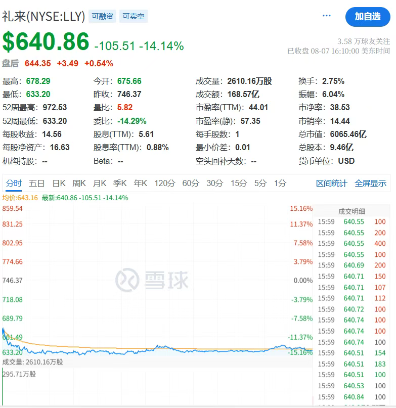 因为口服减肥药研究数据不及预期,公司股价一夜大跌14%,市值从7000亿美元跌至6000亿美元,Orforglipron以一己之力引发千亿美元市值损失。