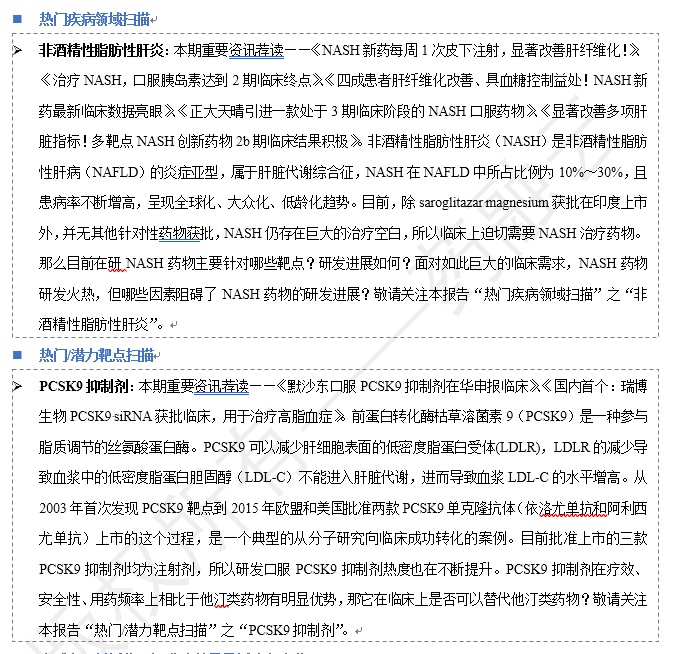 10月24日(周一)晚19:30,药融云高级数据分析师徐艺菡将在在药鼎记直播间全面扫描NASH药物市场,重点剖析PCSK抑制剂研发格局,供业内人士提供参考。此外还将对近期国内新药注册情况和投融资重点事件进行解析。