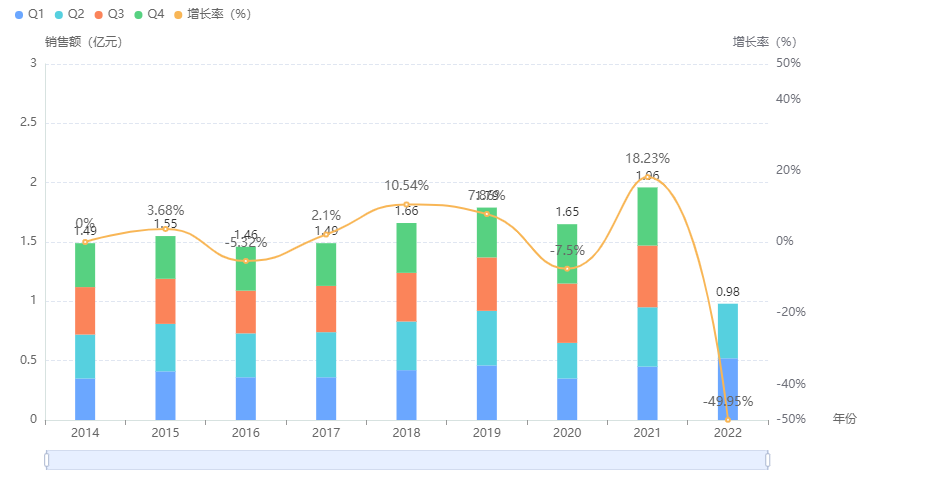 据药融云统计,盐酸伊托必利近年来在我国院内的市场趋于稳定,年销售量保持在一亿元以上,其中销售峰值在2021年,市场规模达到1.96亿。药融云全国医院销售数据库于近期更新了2022年Q2的药品销售额,由下图可见该药今年H1已有0.98亿元,与去年同期基本持平。其中,片剂为市场主力品种,盐酸伊托必利片(52.92%)与盐酸伊托必利分散片(42.19%)瓜分大部分院内市场。在生产企业方面,国企与外企分庭抗衡,雅培(41.84%)VS迪沙药业(42.19%)势均力敌,其他国企有待发力。