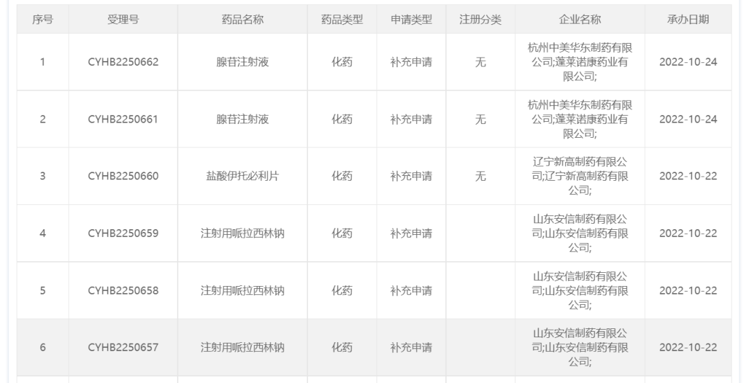 10月22日-24日,CDE共承办了6个(3品规)一致性评价补充申请,分别为: