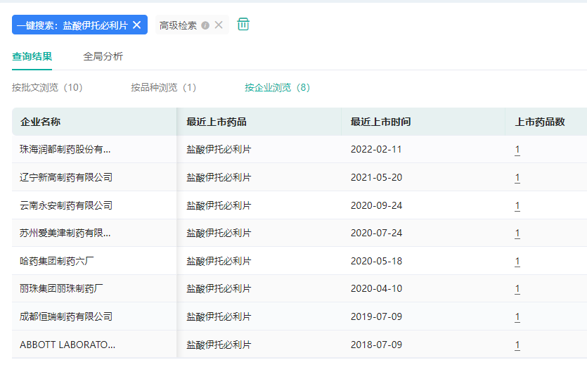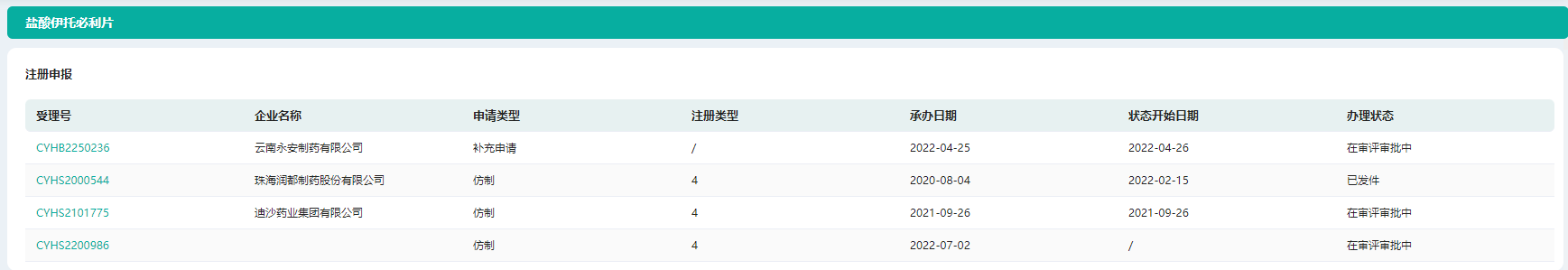 盐酸伊托必利片获批上市企业情况(微信搜索"药融云小程序"进行相关更多数据查询)