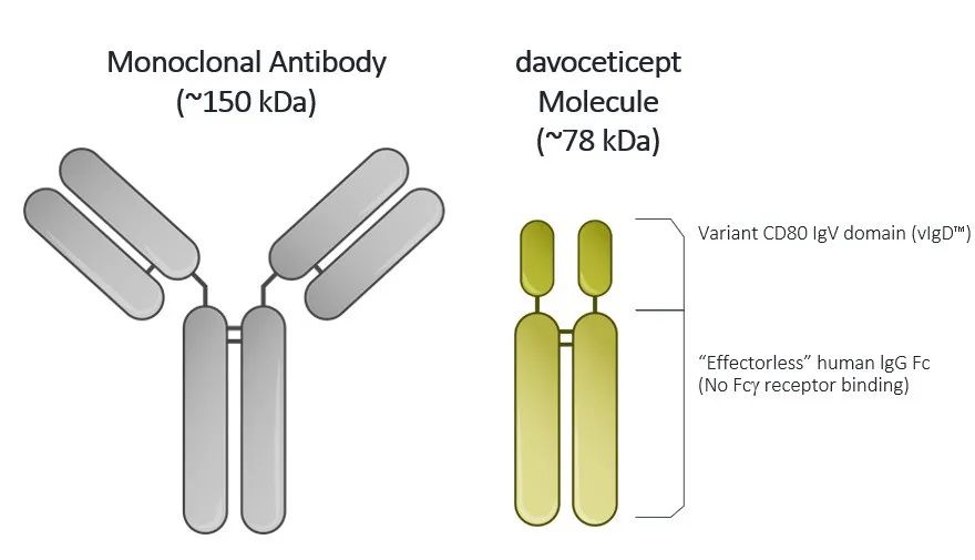 Davoceticept是一种重组蛋白疗法,它将CD80的抗体可变区片段经过定向进化,赋予它和PD-L1结合的能力,然后将这一蛋白片段与抗体Fc片段融合形成重组蛋白。