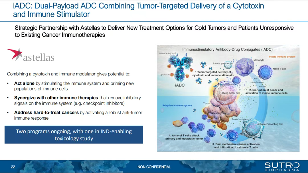 在Sutro与安斯泰来围绕“双载荷免疫刺激型ADC(iADC)”的合作框架下,两个研发项目正稳步推进;其中一项已于近期启动IND所需的毒理学研究,并触发了向 Sutro 支付的750万美元里程碑款项。