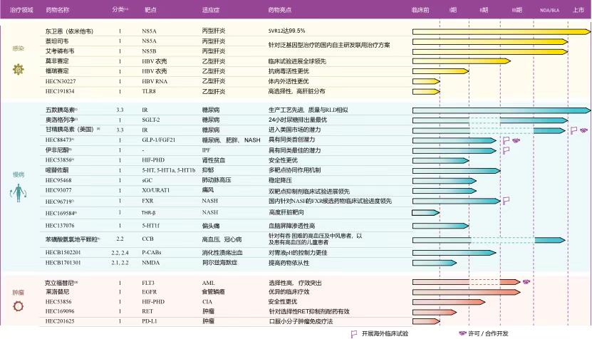 跨越传统优势领域,东阳光药逐渐迈向高难度创新,在感染、肿瘤、代谢及慢病等多个战略重点治疗领域拓展,构建起多元化且极具竞争力的创新药管线。