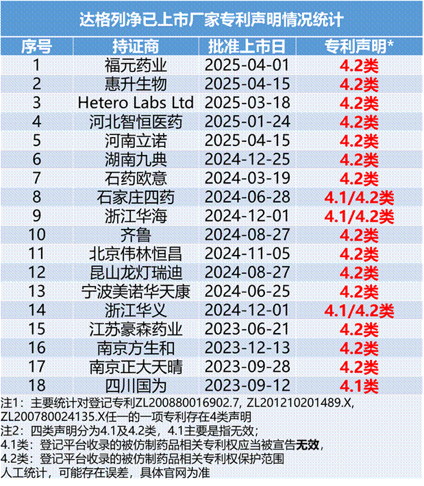 (2)对于官方确认的14家企业达格列净口服剂型入选集采,大概率是原研和13家进行专利4类声明的企业。